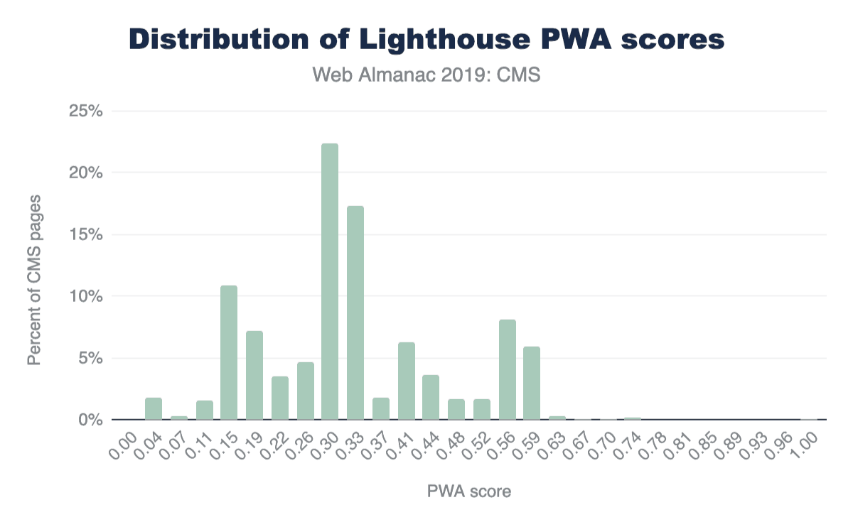 図14.20. CMSページのLighthouse PWAカテゴリスコアの分布。