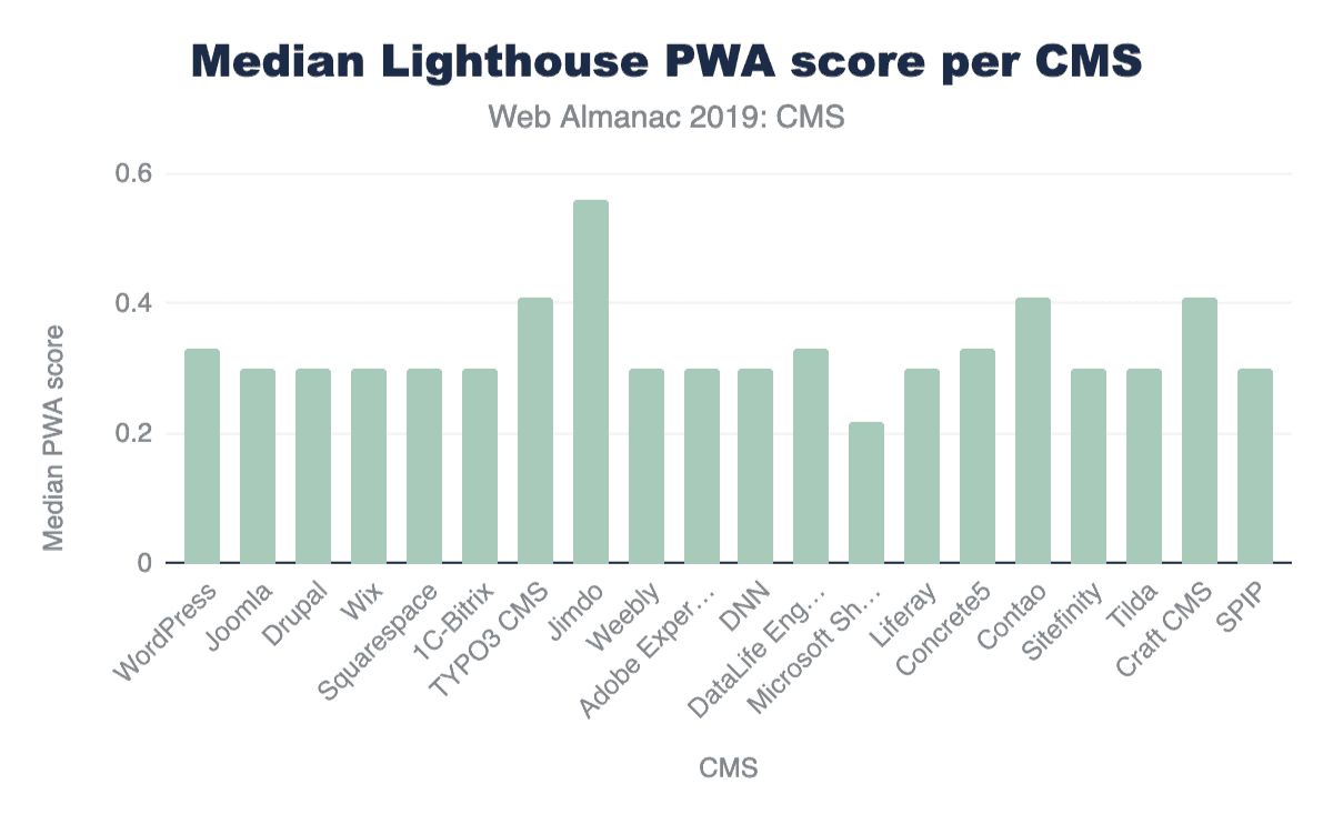 図14.21. CMSごとの灯台PWAカテゴリスコアの中央値。