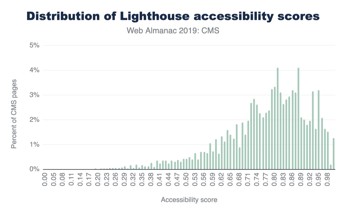 図14.22. CMSページのLighthouseアクセシビリティカテゴリスコアの分布。
