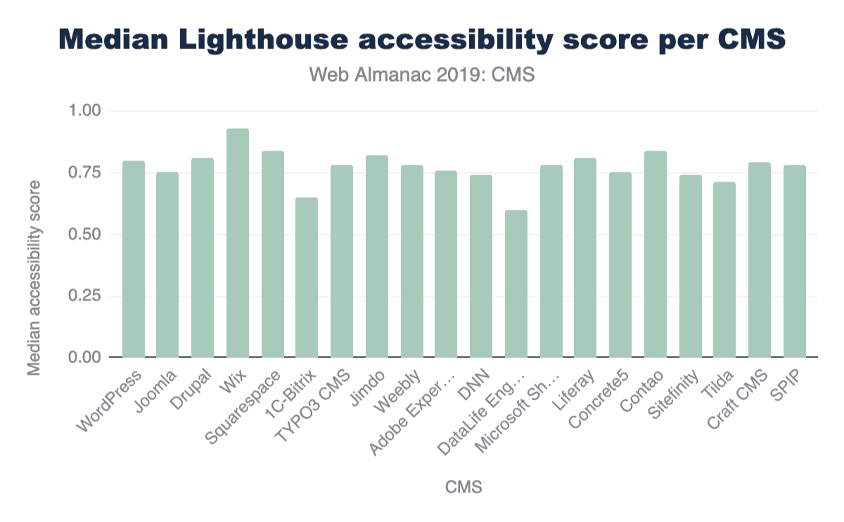 図14.23. CMSごとのLighthouseアクセシビリティカテゴリスコアの中央値。